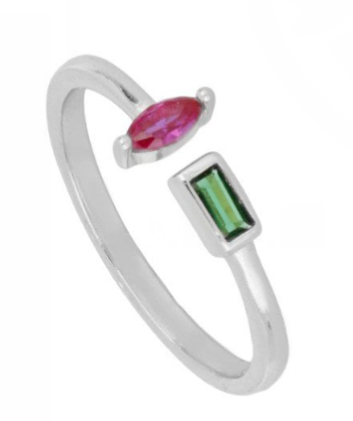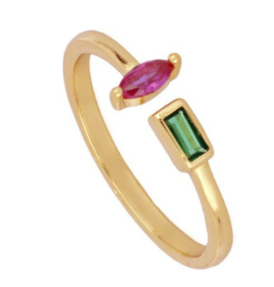Pink Marquise and Emerald Ring